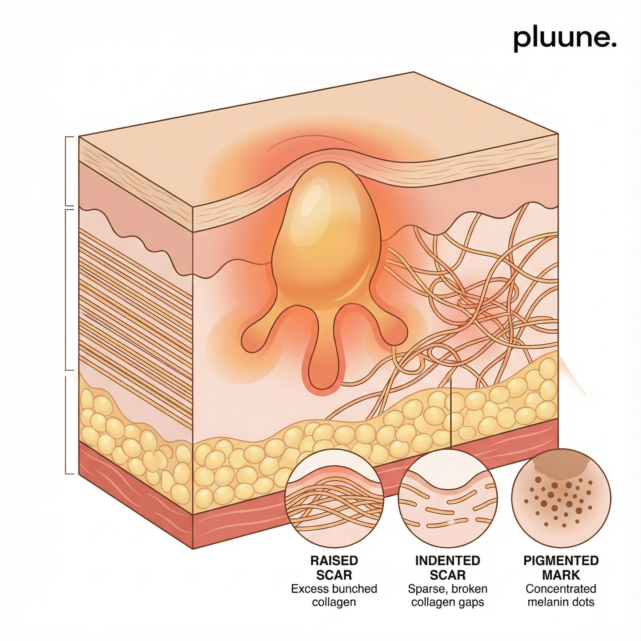 Once this uneven collagen forms, it becomes structural damage. That's your scar and why surface creams can't fix it.