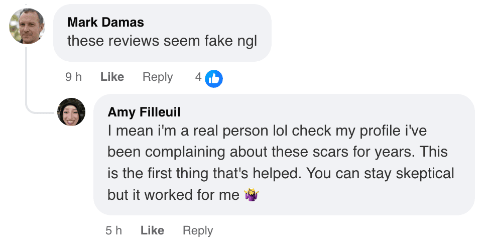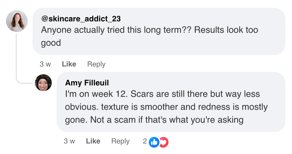Scar appearance varies from person to person. Most customers report noticeable improvement in texture and visibility with consistent daily use over several weeks.
