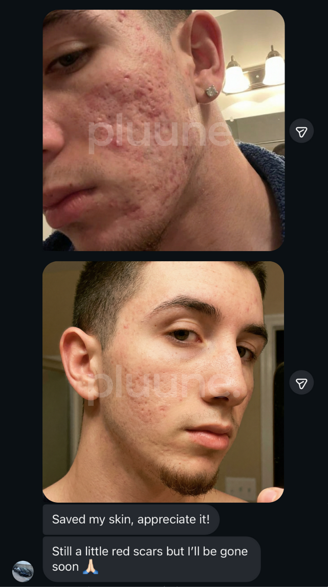 Use Pluune twice daily for 60 days. If you don't see smoother texture, reduced redness, or improvement in how you feel looking in the mirror we'll refund you. No questions asked.
